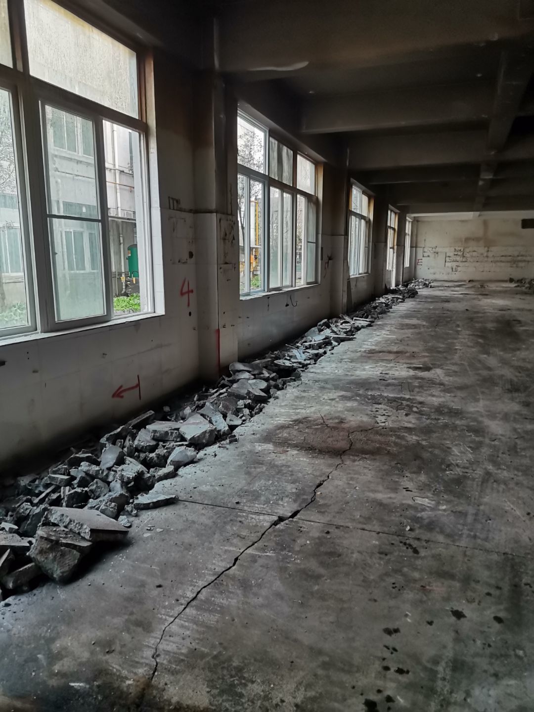 1.排水溝破除100%; 2.二樓墻體拆除80%。 今日問題:1.取消隔油池開挖工作,改為清理現有油池,室內排水方案需局部調整。