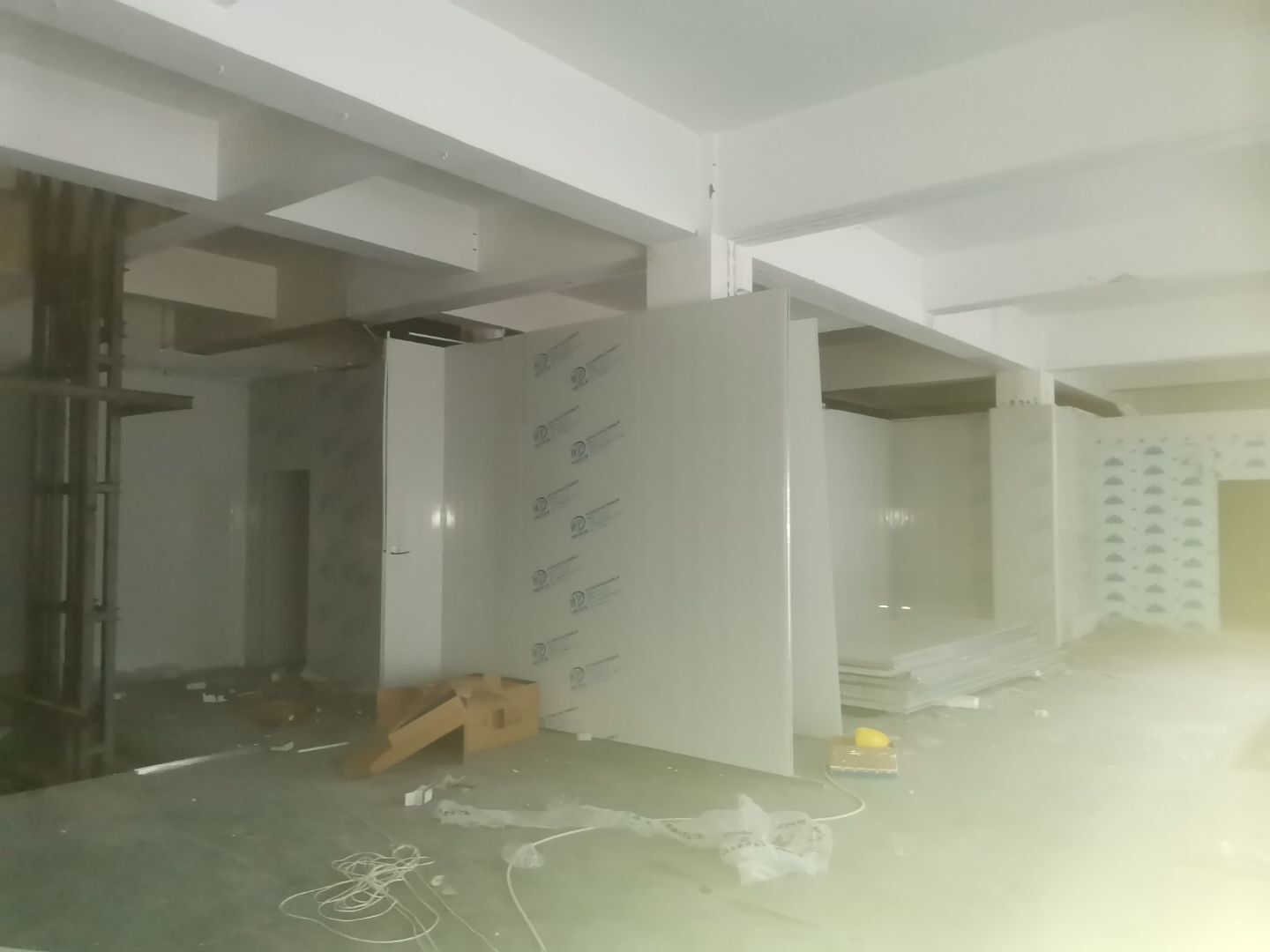 1、二樓衛生間墻磚75%完成; 2、二樓辦公區墻面膩子完成100%; 3、二樓燈具安裝完成70%; 4、地坪固化完成100%; 5、墻板安裝完成95%; 6、頂板安裝完成95%; 7、窗洞開設完成100%; 8、一樓室內照明插座安裝完成70%。