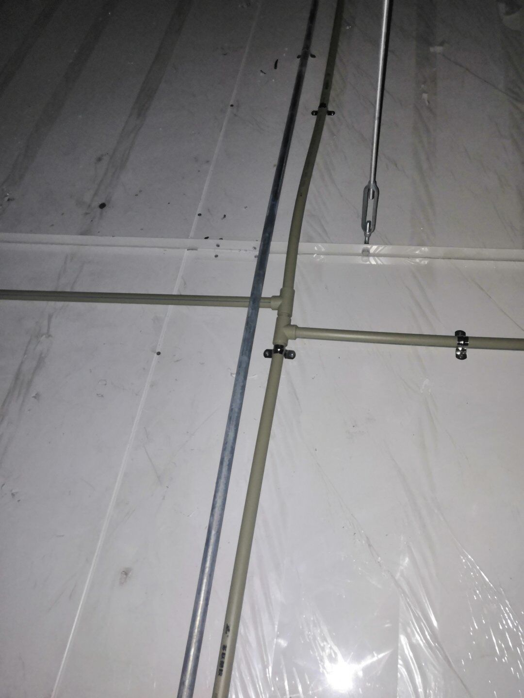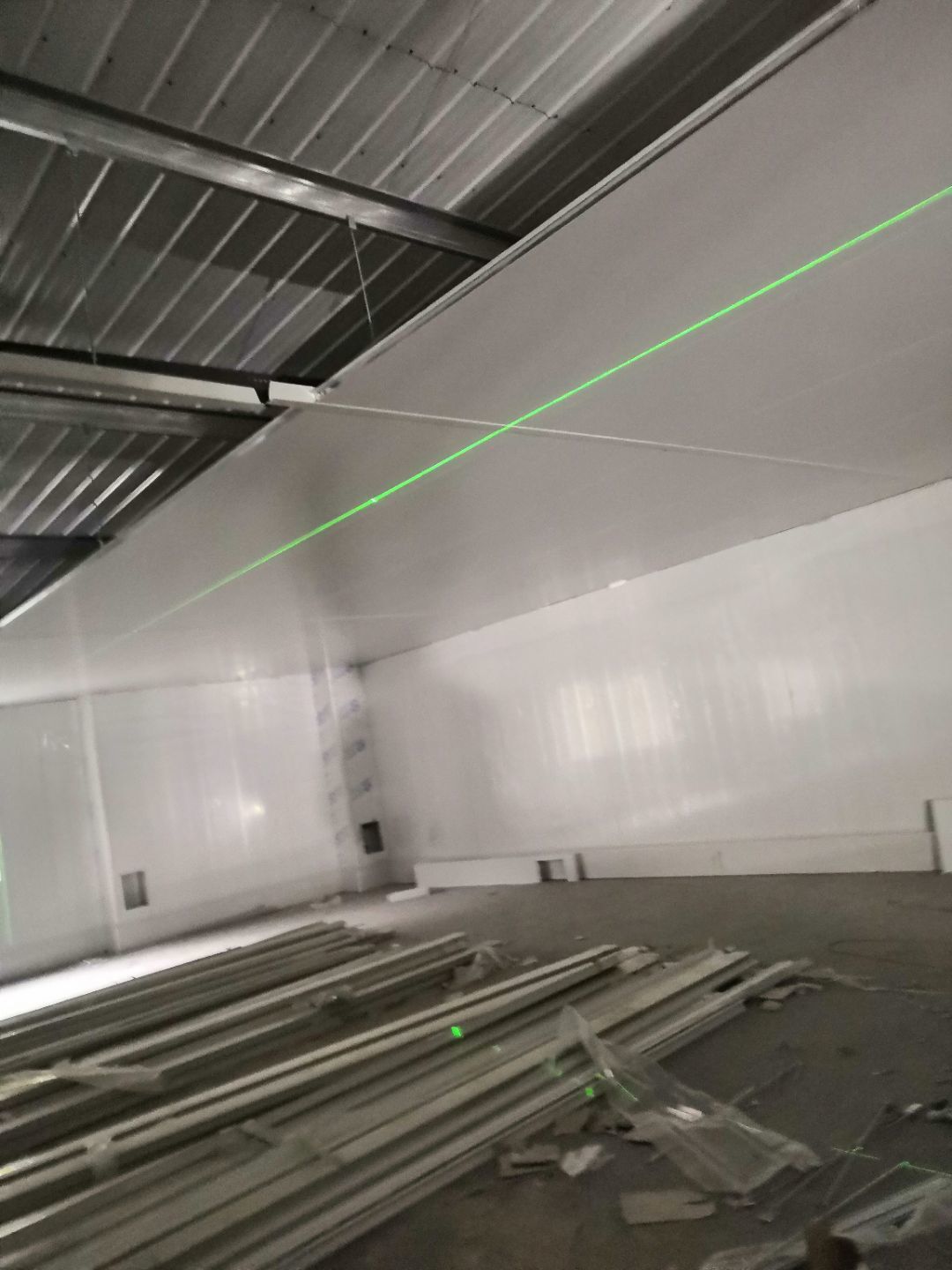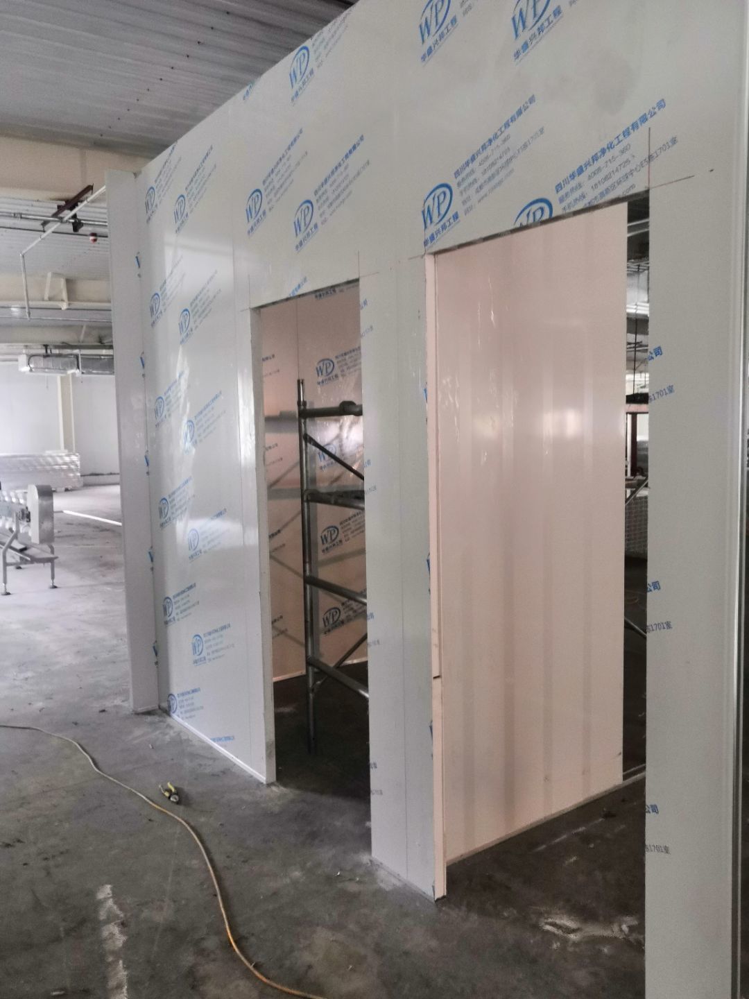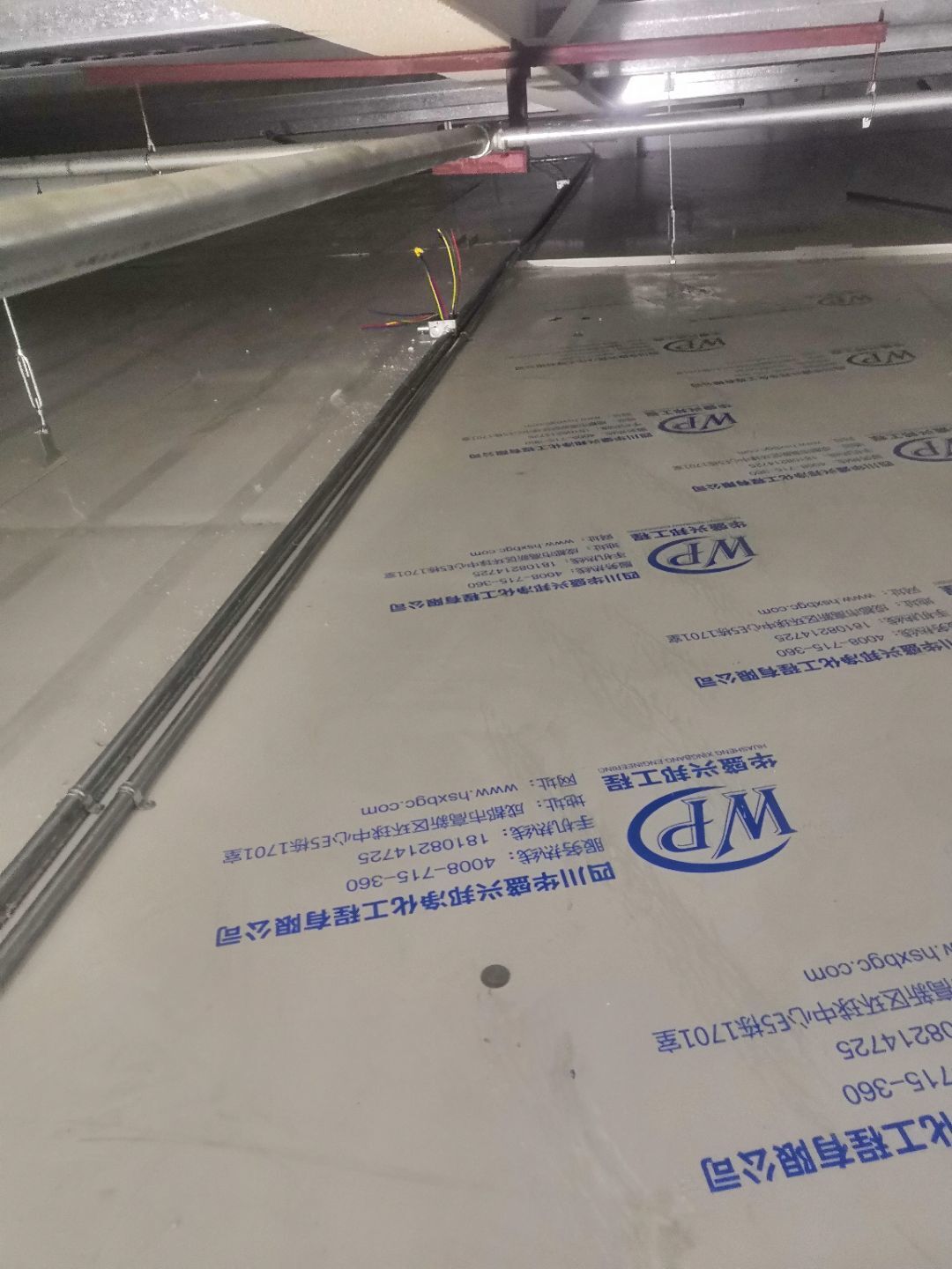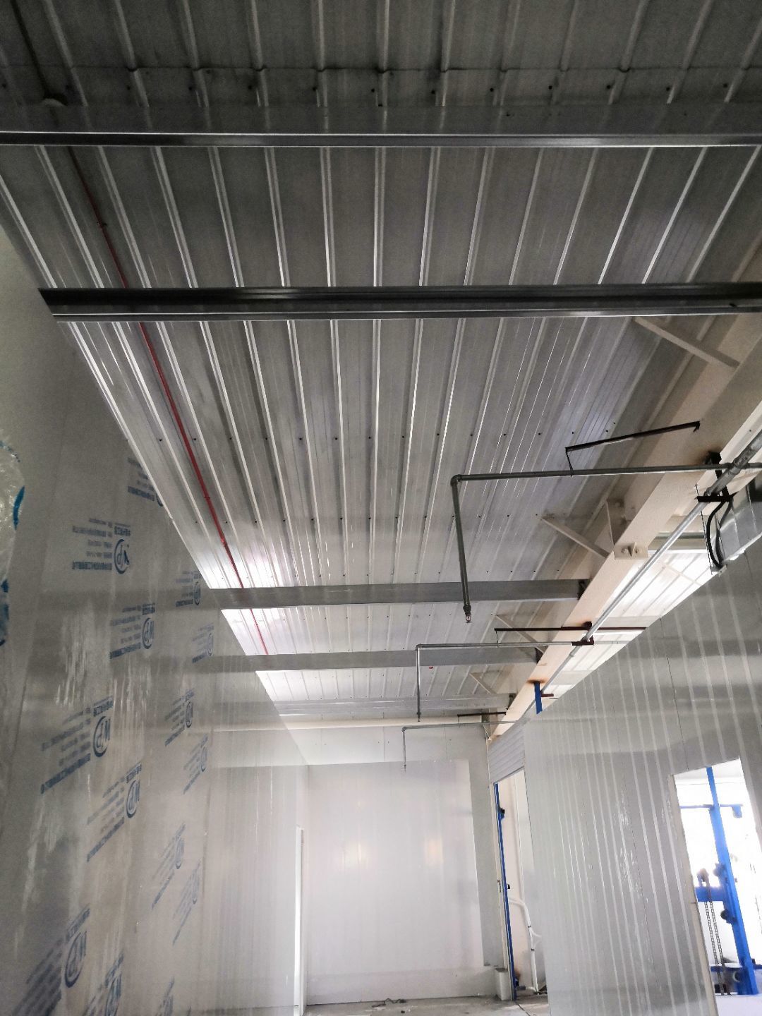 1.一樓樓梯間立墻板完成100%; 2一樓通道排燈線,二樓參觀通到排線;3. 電梯立墻板,一樓接臭氧管子90%。