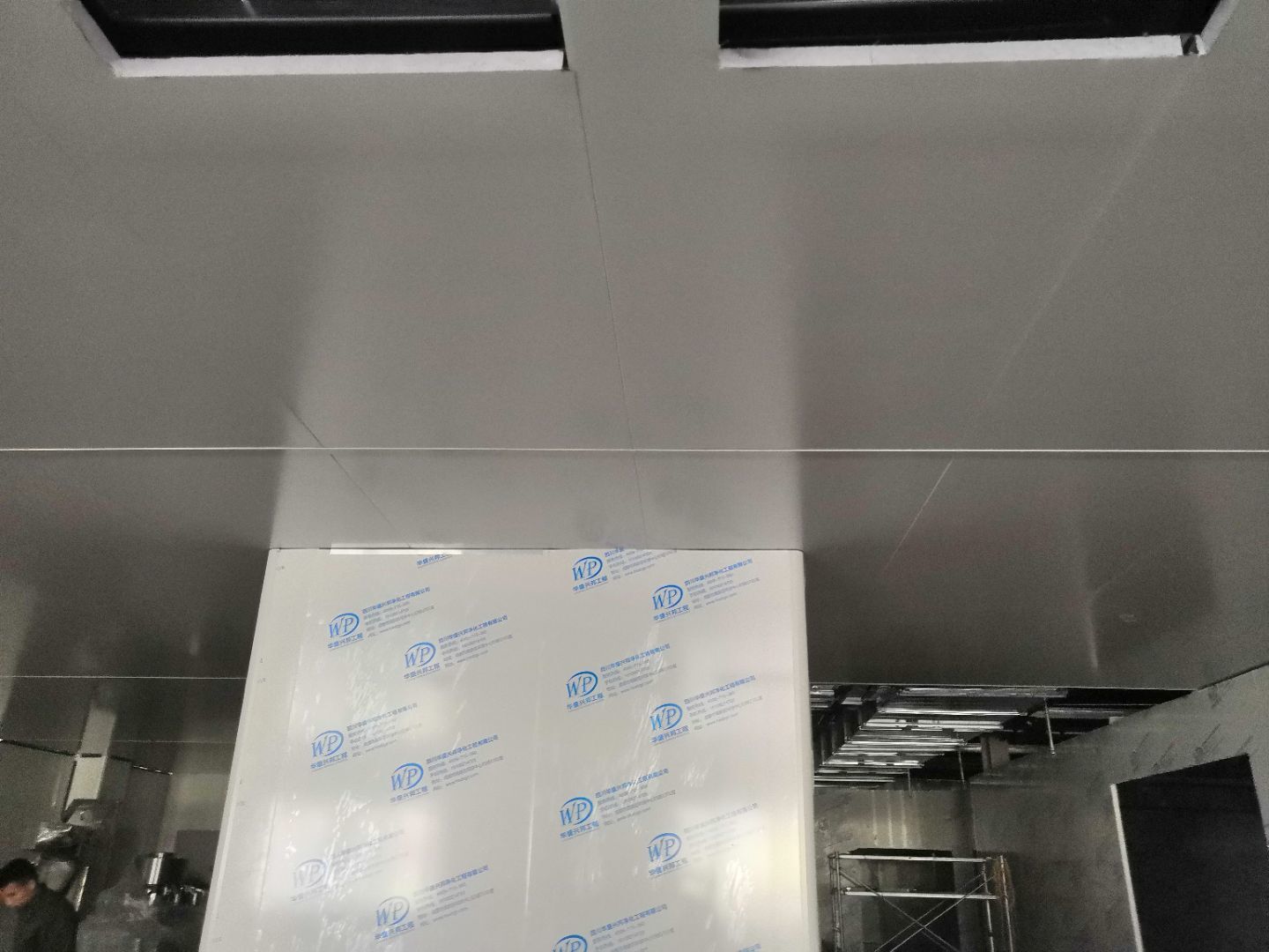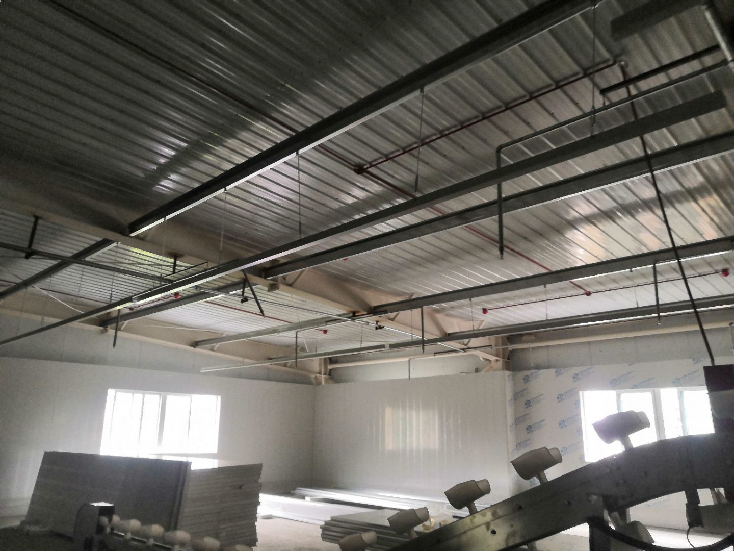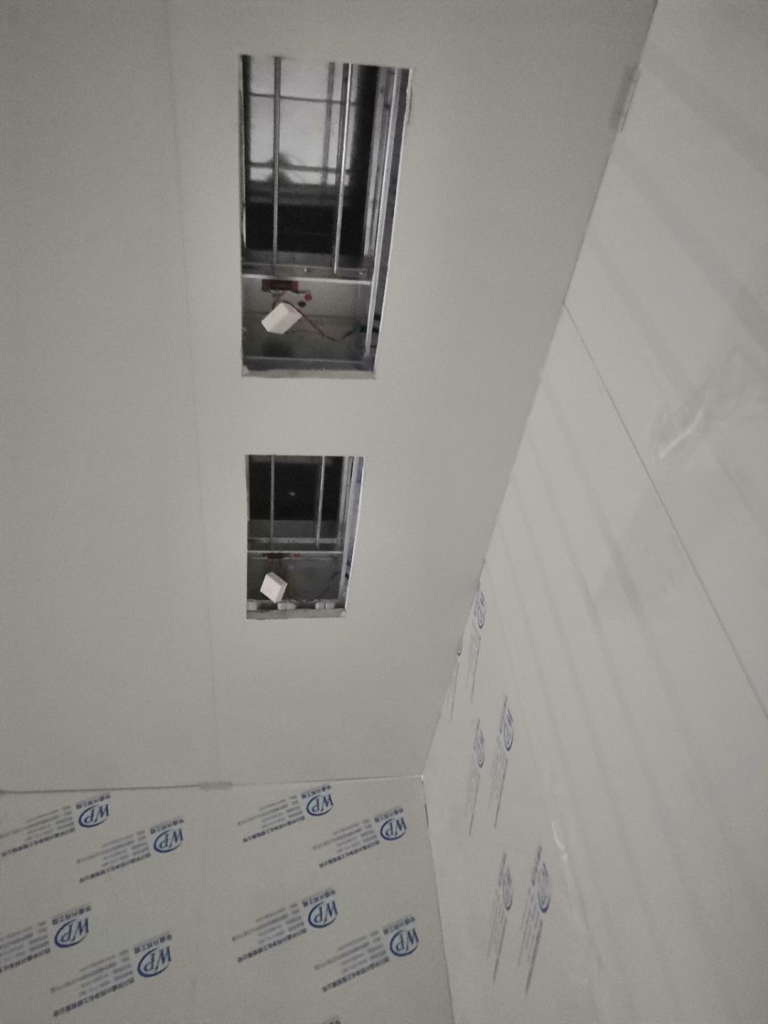 1.二樓接臭氧管子完成100%; 2.二樓裝窗況完成50%; 3二樓包消防箱,包電梯; 4.二樓裝風淋室。