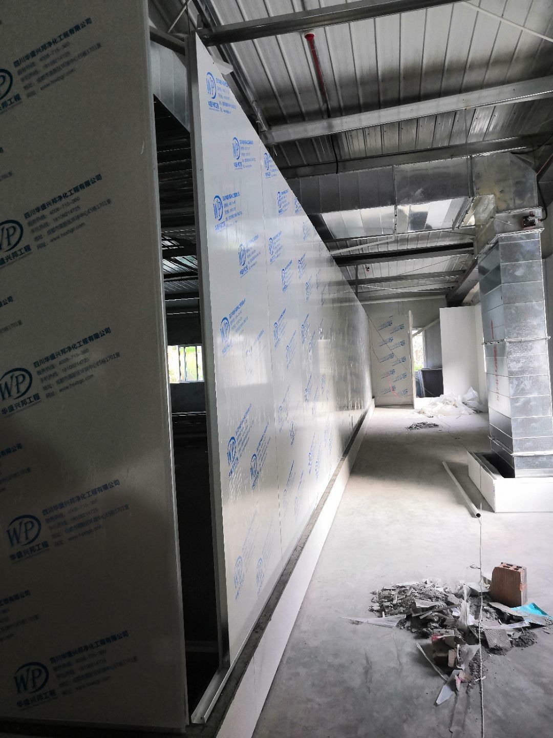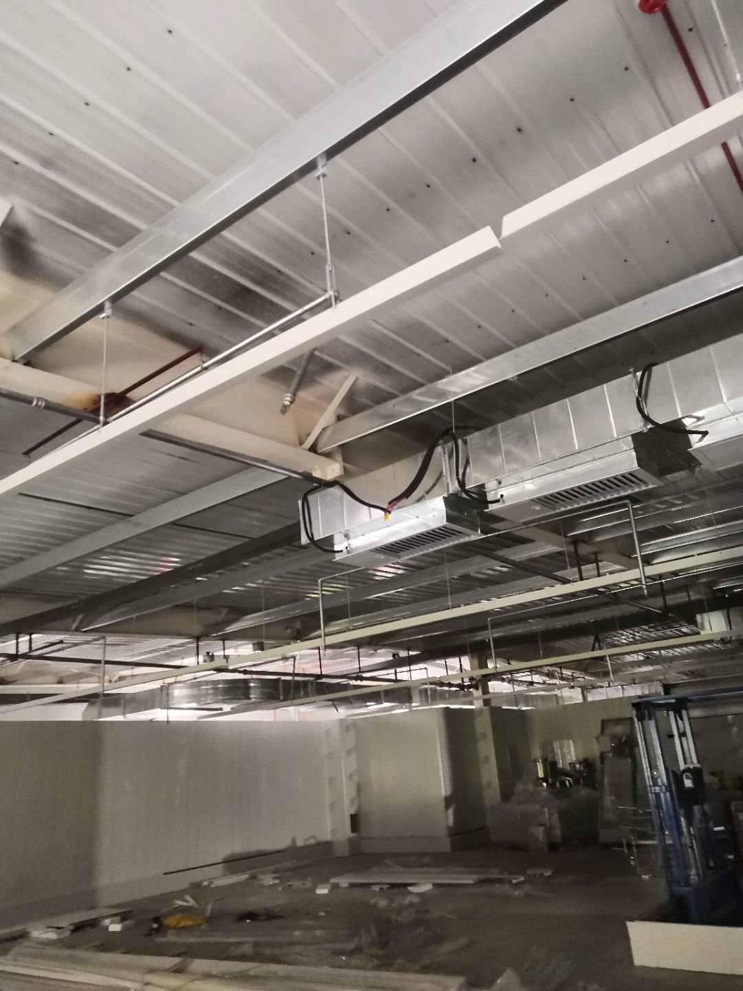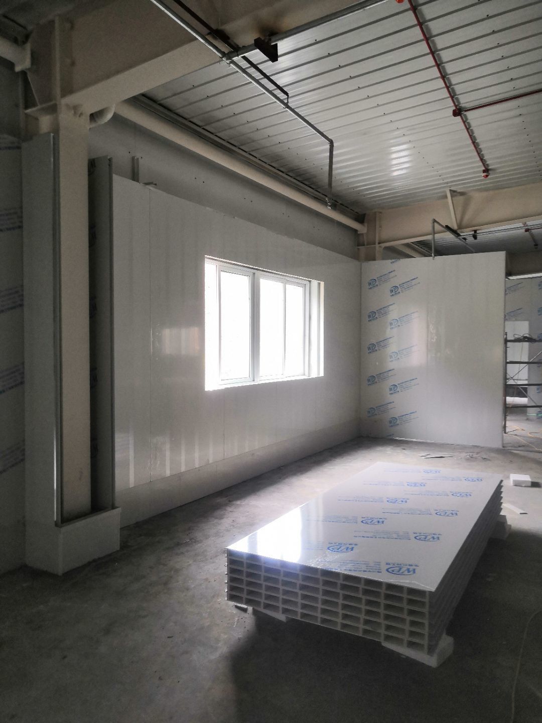 1.二樓接臭氧管子完成100%; 2.二樓裝窗況完成50%; 3二樓包消防箱,包電梯; 4.二樓裝風淋室。