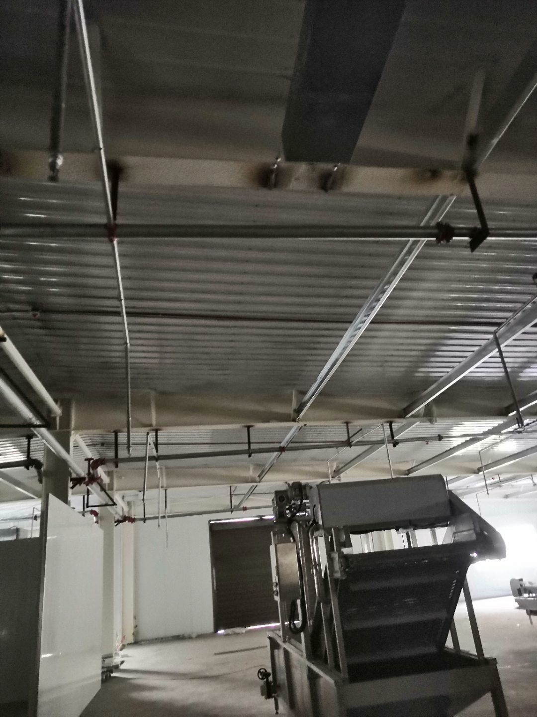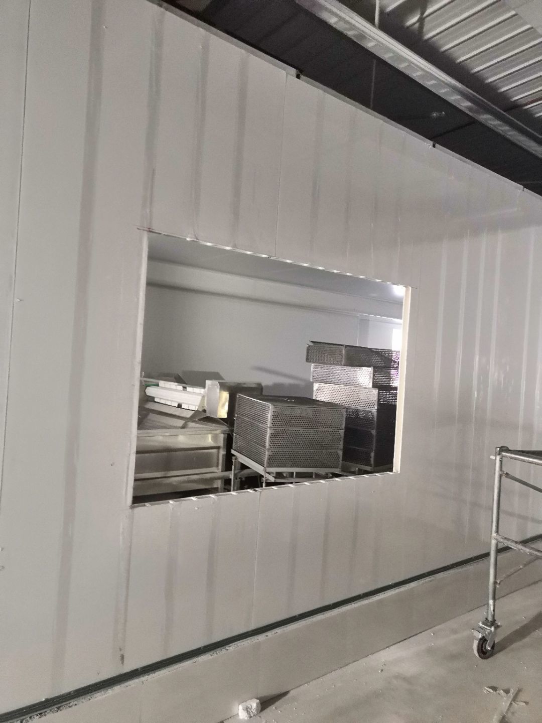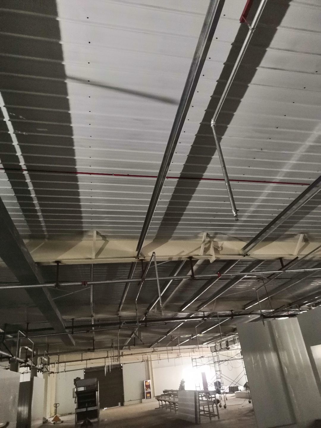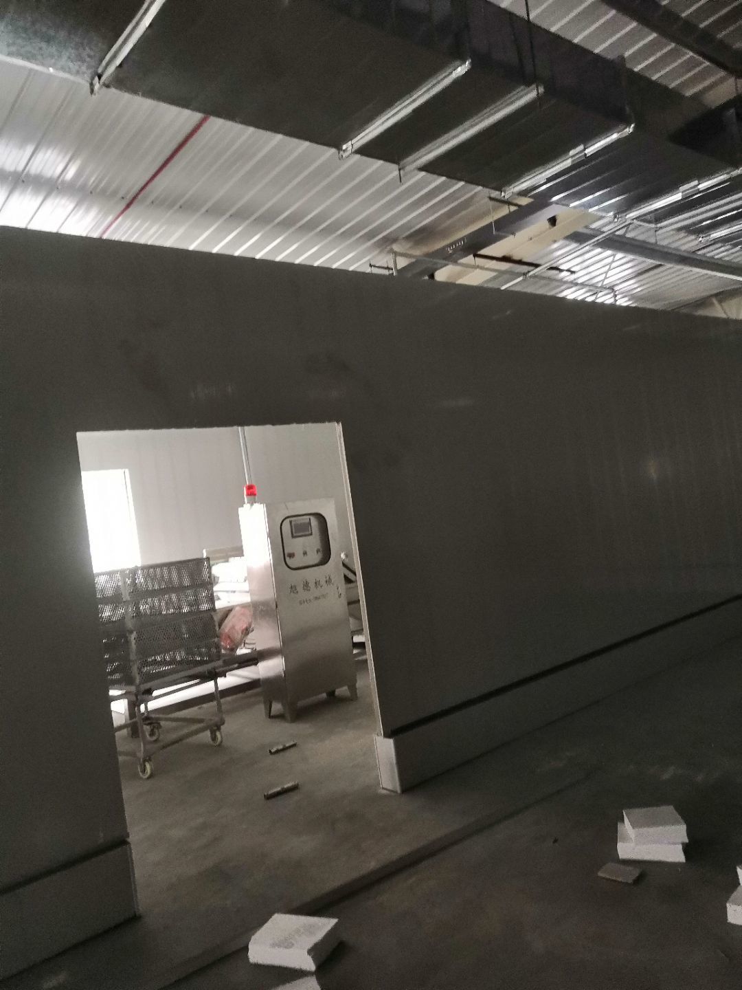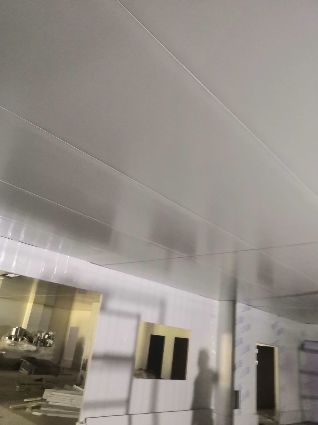 1、內包間,殺菌間,更衣間,煉油間打膠條,(完成二樓打膠條20%); 2、內包間拍圓?。ㄍ瓿啥菆A弧5%) ;3、殺菌間包氣管子。