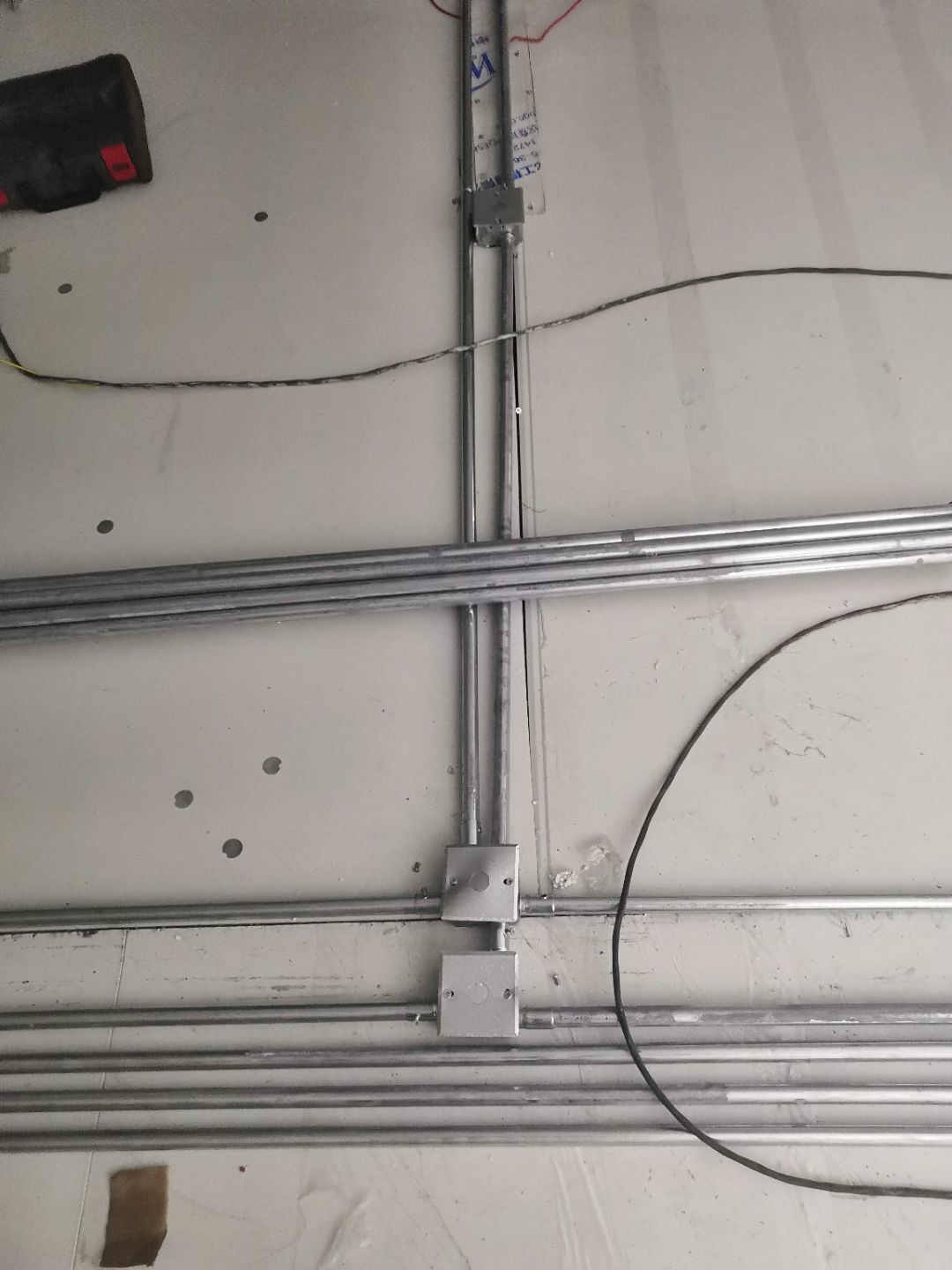 1:一樓吊頂完成85%; 2:一樓電梯立墻板; 3:1樓排燈線川管完成40%; 4:二樓穿線排管完成90%;5:第12車材料到場。