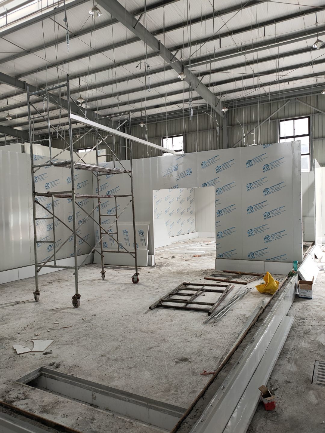 彩鋼板完成至75%,水電開始安裝