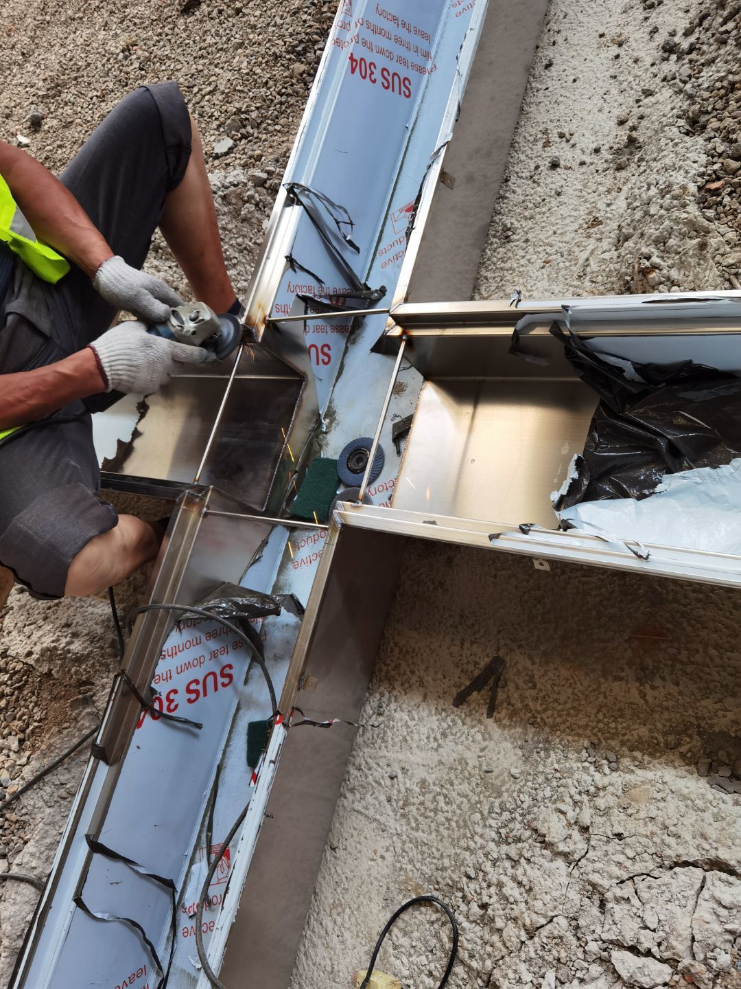 1,場地 整平 2,鋼構(gòu)施工 3,不銹鋼排水溝安裝 4,不銹鋼水溝第二批到場 焊接 5,pvc排水管安裝 6,室外電纜管安裝 今日材料進場 不銹鋼排水溝材料