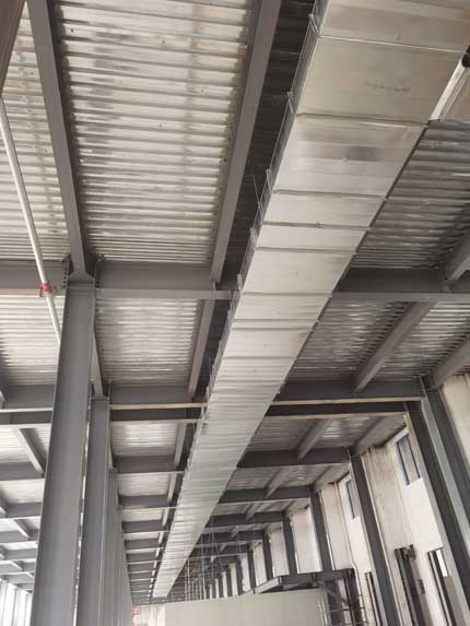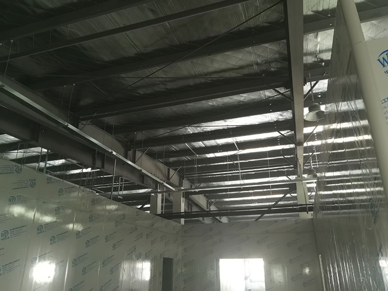 1,一樓地槽 彩板 吊筋安裝 2,一樓鋼構(gòu)頂刷漆 3,一層鋼構(gòu)平臺施工 4,西邊室外雨水管安裝 5,一樓凍庫門體安裝 6,一樓空調(diào)風(fēng)管吊裝 7,二樓空調(diào)柜機吊裝 8,電梯施工