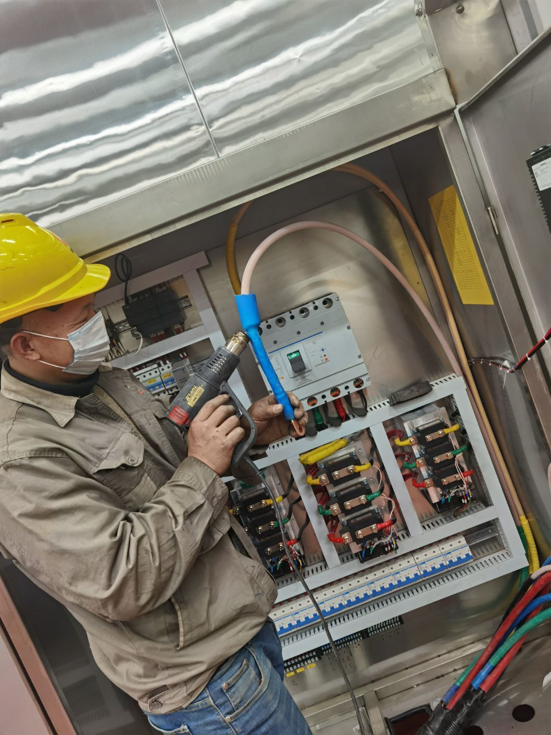 今日施工內(nèi)容 1.二層彩板安裝 2, 一層門體安裝 3,監(jiān)控施工布線 4,參觀通道原子灰開始補縫 5,設(shè)備就位 6,配電箱壓線頭 7,二樓煙感安裝 8,室外污水池墊層澆筑