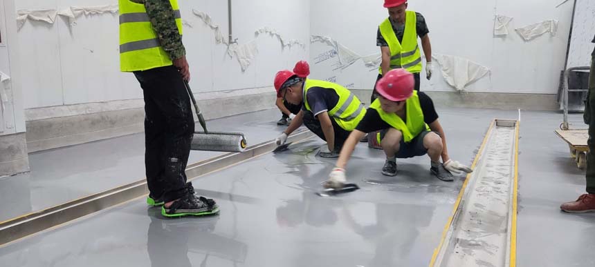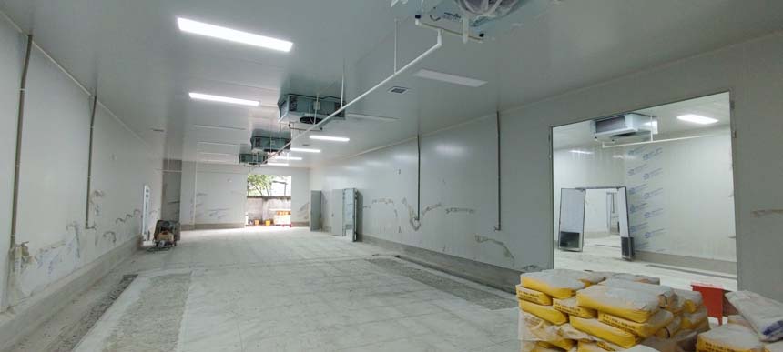 凍庫材料到場,排水管安裝,凍庫隔斷施工