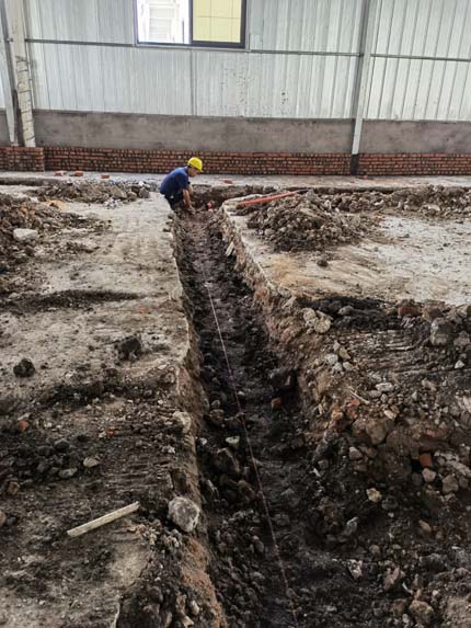1.水溝,擋水墻,排水管放線完成。 2.排水溝,排水管切縫完成百分之80