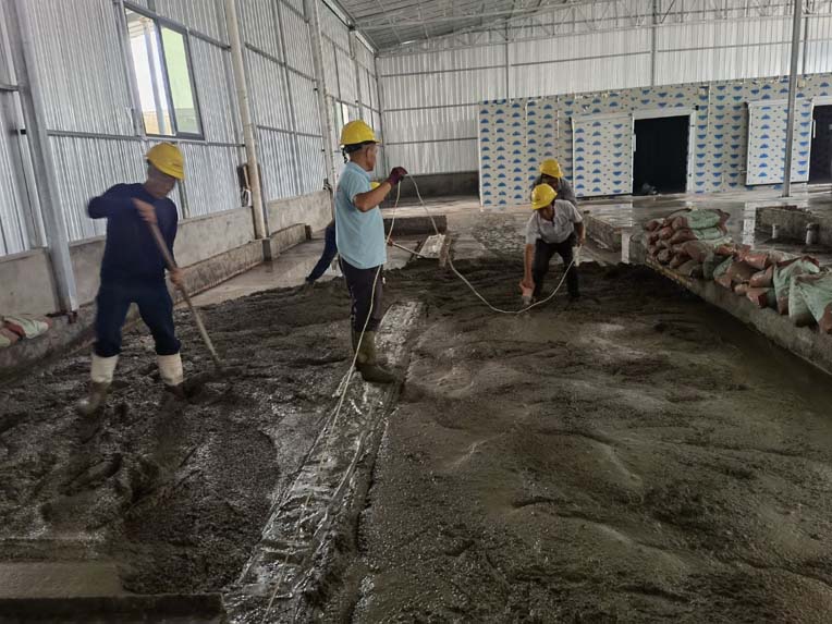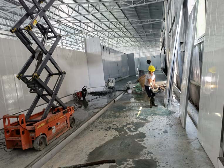 1.浸泡間與煮制間彩鋼墻板安裝完成百分之八十。 2.混凝土澆筑準備工作完成。