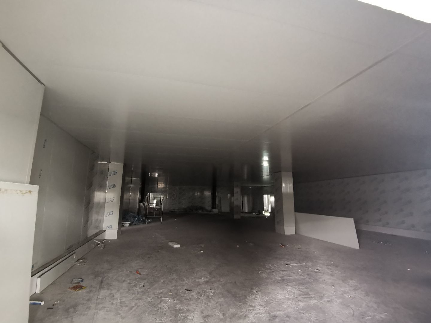 1、材料三防板到貨 2、彩鋼工程打膠安裝圓弧完成總體50% 3、LED平板燈安裝完成總體70%