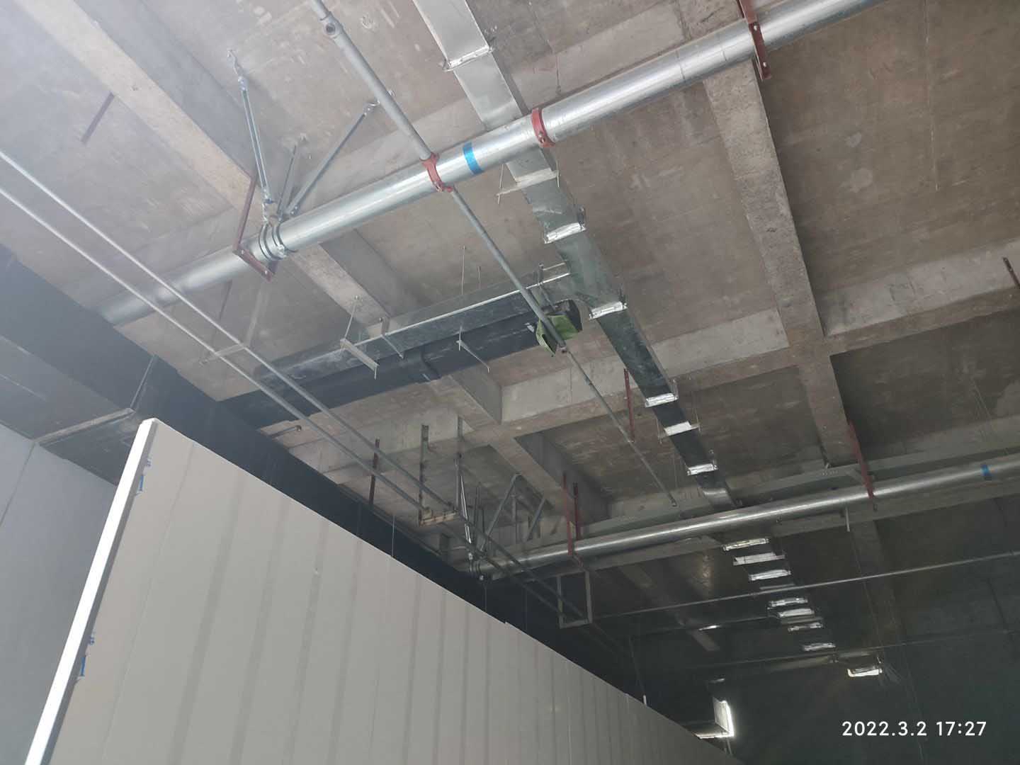 1,彩鋼板工程整體完成90%; 2,照明完成92%,插座完成90%; 3,空調末端風管安裝完成90%,高效濾芯及擴散孔板完成80%,1,2號機組空吹完成。