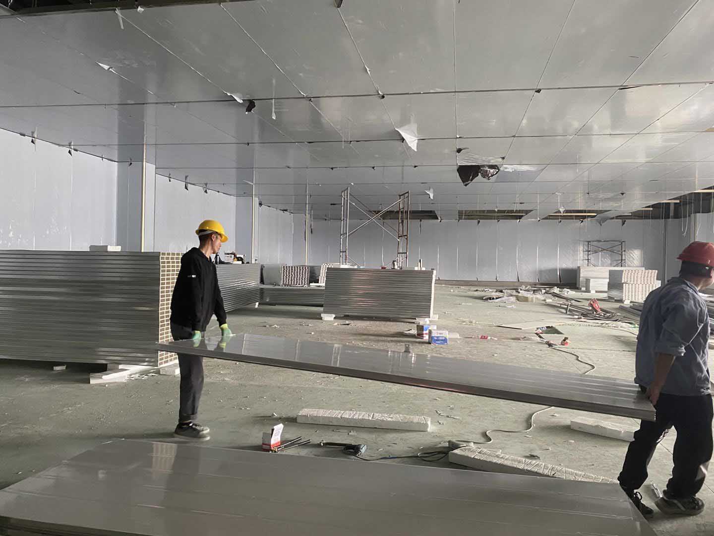 1、三車間環氧地坪超耐磨面層施工完成、二車間增加環氧地坪工程量打磨和底涂施工; 2、增項彩鋼隔墻板施工、門安裝; 3、風機電源接駁、排氣扇波紋管更換安裝; 4、土建擋水墻、門洞貼磚勾縫