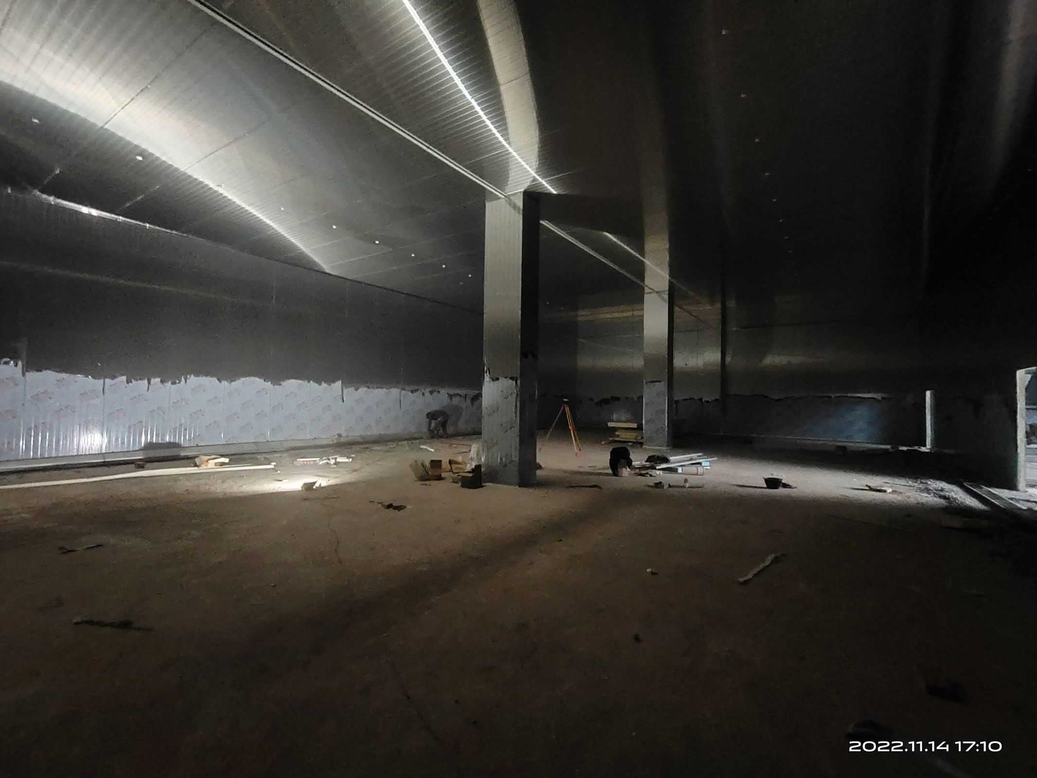 1、裝修水電安裝施工作業 2、蒸發冷設備機組管道焊接作業。 3、制冷管道保溫 4、圓弧施作業.鋼制門安裝 5、管道保溫作業。 6、無縫鋼管陪管 7、設備機組配線。 8、觀察窗安裝完成 9、凍庫控制電柜安裝。 10、平臺設備動力電施工 11、速凍庫2鋁格柵施工作業 12、新風系統安裝完成95%) 13、衛生打掃