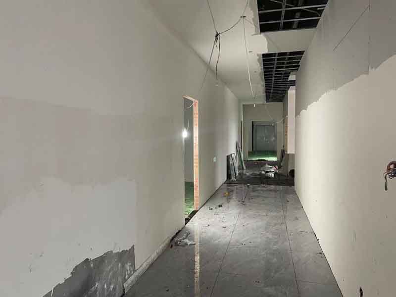 今日施工內容:1.隔墻龍骨吊頂龍骨架設 2.隔墻封板 3.電工照明線路鋪設