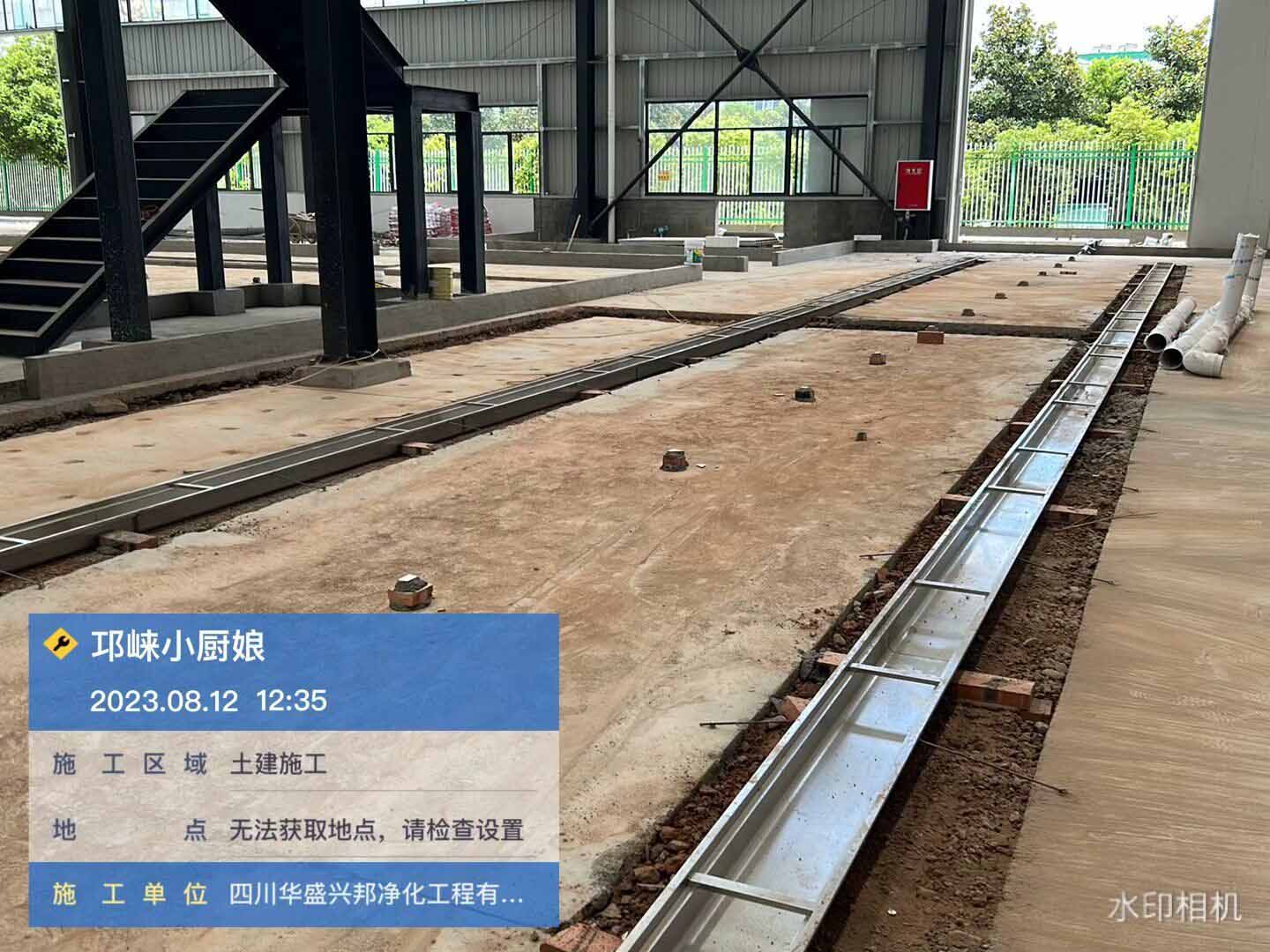 污水池土建施工,參觀通道鋼構(gòu)搭建,通道水泥澆筑