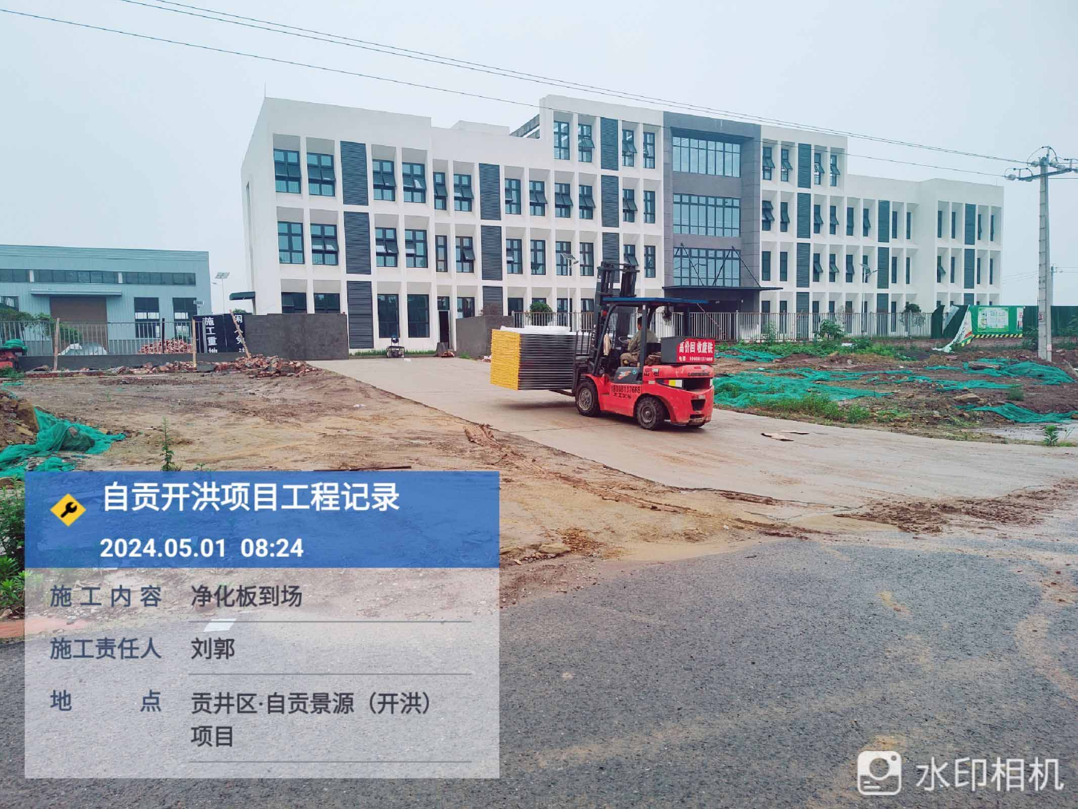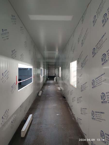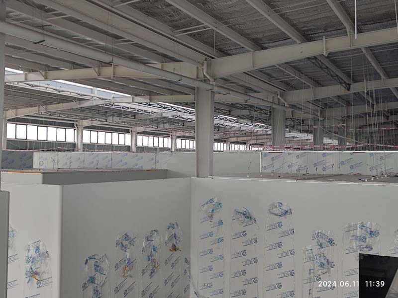 1、參觀走道鋼柱擋水墻砌筑抹灰完成80% 2、進化板吊頂安裝 3、凈化板墻板安裝 4、到場凈化板及鋁材卸貨
